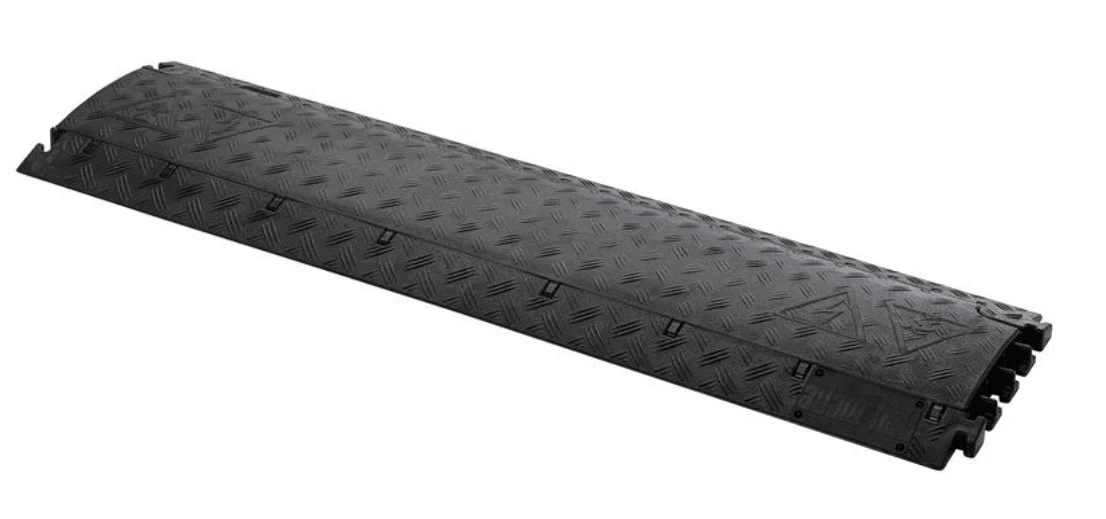 These cable crossovers boast 6 cable channels for neat, orderly cable routing, T-connectors and a load capacity of 2 tonnes; besides pedestrian traffic, they also take light-duty vehicles, trolleys and – thanks to their flat profile – even forklift and pallet trucks.