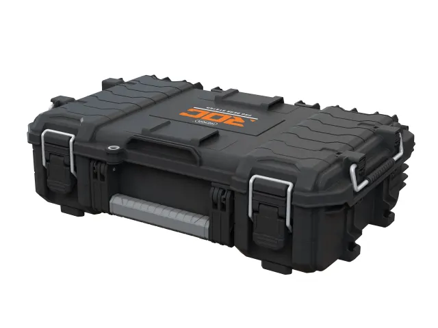 The Keter Roc Pro Gear 2.0 Power Tool Case can withstand the rough-and-tumble conditions of any shop or site, thanks to its durable latches and metal-hinged lid for full opening. Allows work with open lid, whether stacked or wall mounted.